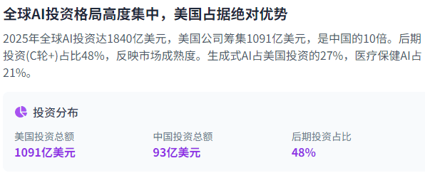 仅正在第四时度,100家AI公司。而法国和意大利估计将别离增加27%和21%。美国AI公司的平均估值已达4.28亿美元,但也添加了冲破性立异呈现的可能性。本钱流向呈现出显著的集中化趋向。沉点关心四个焦点方面:手艺演朝上进步立异速度、本钱流向取投资动态、地缘合作取计谋互动,生成式AI的投资高潮也鞭策了相关根本设备的扶植,可能导致新的就业极化和技术差距。